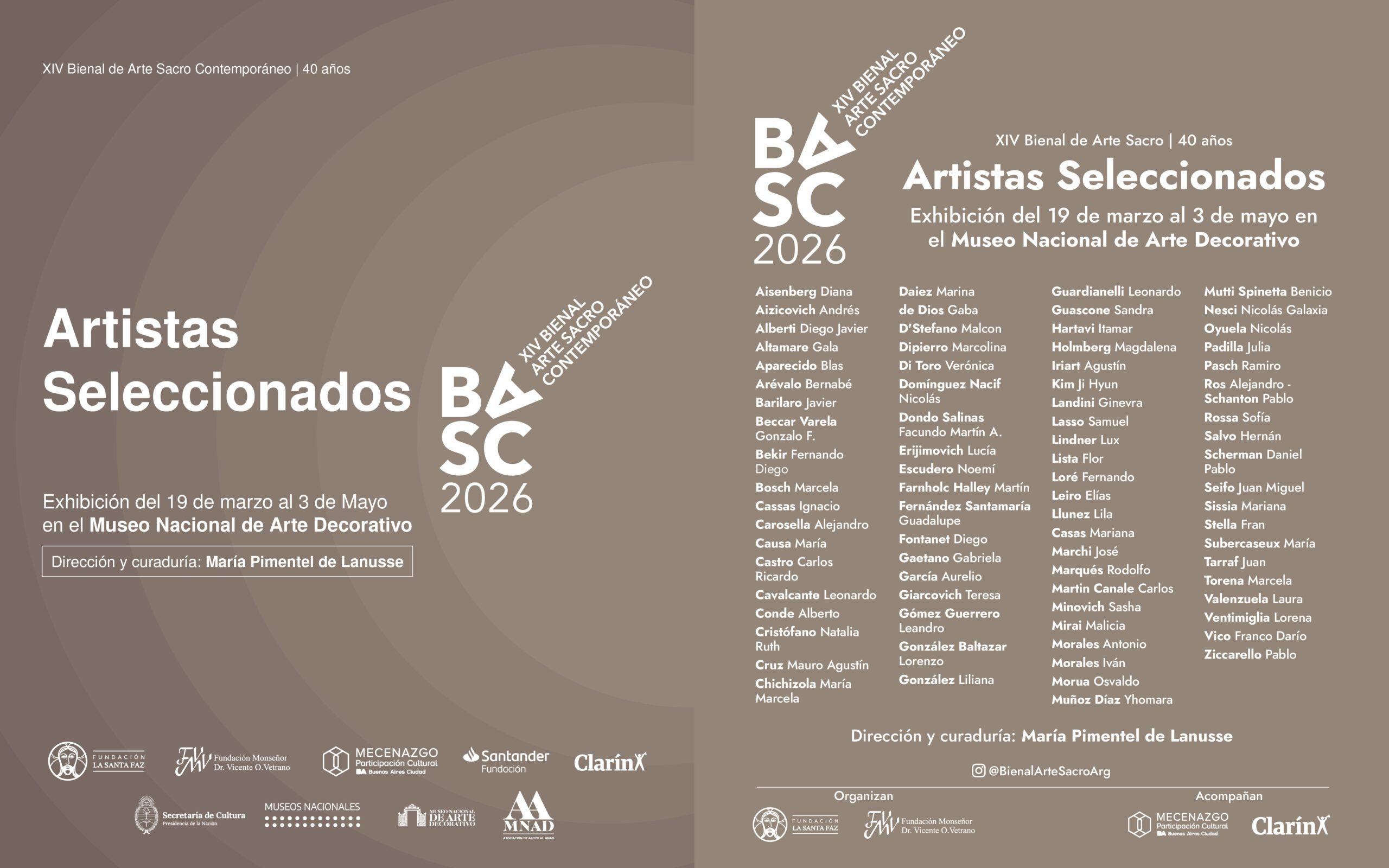 La XIV edición de la Bienal de Arte Sacro Contemporáneo convoca a la comunidad artística a reflexionar acerca de lo Sagrado como expresión de la trascendencia del hombre hacia lo divino.